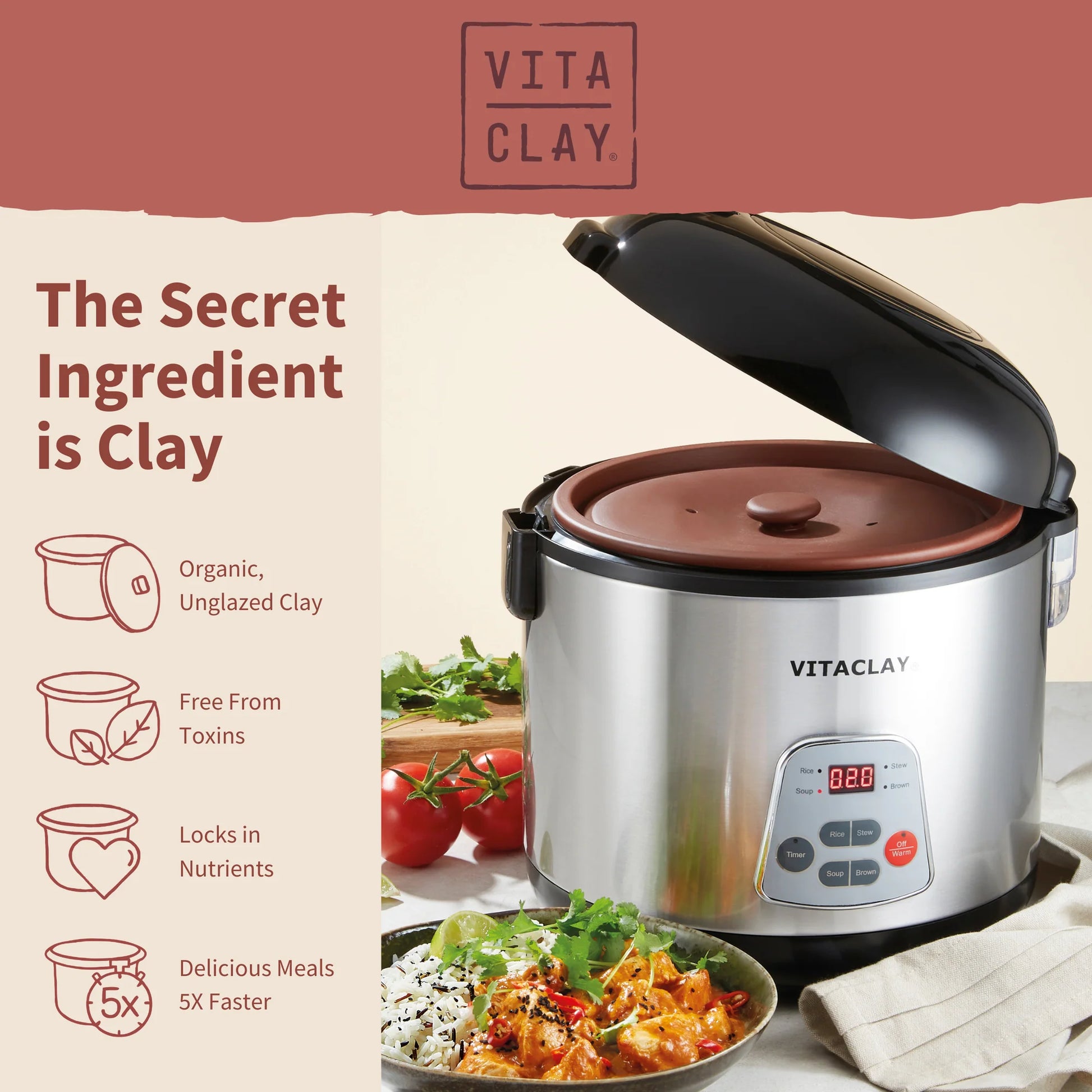 - 烹饪速度比传统慢炖锅快两倍